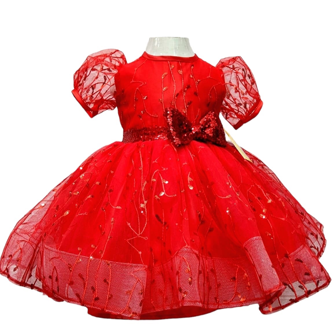 Crafted with soft, breathable fabric and intricate embellishment, this adorable dress features puffed sleeves, a delicate bow detail, and a full, flowing skirt that ensures comfort and style.